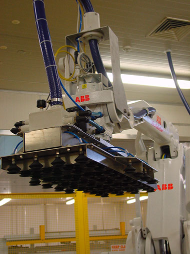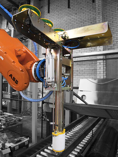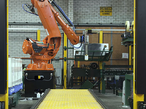 Orica called upon the expertise of Robotic Solutions Australia to create a turn-key system which would palletise, wrap and apply unique labels to their pallets with database traceability.
